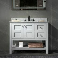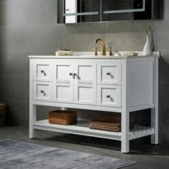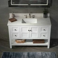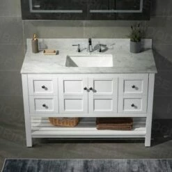 Sydney 48″Bathroom Vanity With Engineered Marble White Carrara Color Top 8″ Faucet Holes | Rectangle Undermount Sink |2 Soft Closing Doors And 4 Full Extension Dovetail Drawers |White Vanity Color |