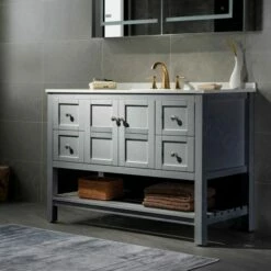 Sydney 48″ Inch Solid Wood Bathroom Vanity Base Only | 2 Soft Closing Doors And 4 Full Extension Solid Wood Dovetail Drawers | Grey Vanity Color |