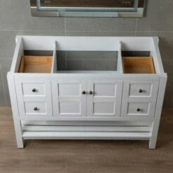 Sydney 48″ Inch Solid Wood Bathroom Vanity Base Only | 2 Soft Closing Doors And 4 Full Extension Solid Wood Dovetail Drawers | White Vanity Color |