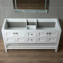 Sydney 60″ Inch Solid Wood Bathroom Vanity Base Only | 2 Soft Closing Doors And 4 Full Extension Solid Wood Dovetail Drawers | White Vanity Color
