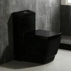 WOODBRIDGE Modern Square Design One Piece Dual Flush 1.28 GP Toilet, Chair Height With Soft Closing Seat, B0921, Black