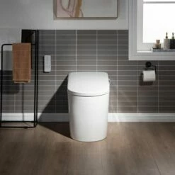 Best Seller WOODBRIDGE B0990S One Piece Elongated Smart Toilet Bidet With Auto Open & Close, Auto Flush, Foot Sensor Flush, LED Temperature Display, Heated Seat And Integrated Multi Function Remote Control, White