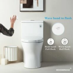WOODBRIDGE B-0750-A Modern One-Piece Elongated Toilet With Solf Closed Seat And Hand Free Touchless Sensor Flush Kit, White