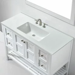 WOODBRIDGE VT4922-1000 Solid Surface Vanity Top With With Intergrated Sink And 3 Faucet Holes For 4-Inch Centerset Faucet, 49″ X 22″, White