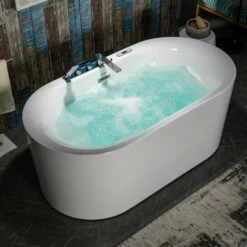 WOODBRIDGE 59″ Contemporary Freestanding Acrylic Air Bubble Soaking Bathtub With Chrome Overflow And Drain B0102-C