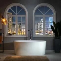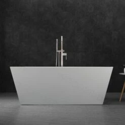 WOODBRIDGE 59 In. X 29 In. Luxury Contemporary Solid Surface Freestanding Bathtub In Matte White