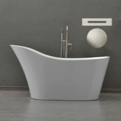 WOODBRIDGE 59″ Acrylic Freestanding Bathtub Contemporary Soaking Tub With Brushed Nickel Overflow And Drain,White Tub,B-0081/BTA0081