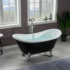 WOODBRIDGE 59″ Heavy Duty Acrylic Double Slipper Clawfoot Bath Tub In Black Color With Chrome Feet + Chrome Drain &Overflow