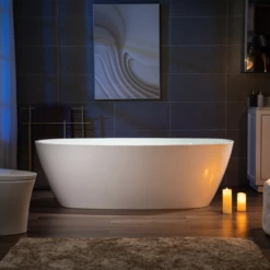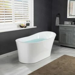 WOODBRIDGE 67″ Acrylic Freestanding Double Ended Contemporary Soaking Tub With Brushed Nickel Overflow And Drain Option, White, B1505