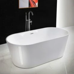 WOODBRIDGE 67″ Acrylic Freestanding Bathtub Contemporary Soaking Tub With Chrome Overflow And Drain,White Tub,B0057-C