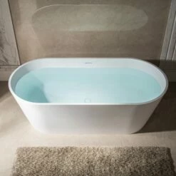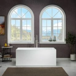 WOODBRIDGE 67 In. X 31.375 In. Luxury Contemporary Solid Surface Freestanding Bathtub In Matte White