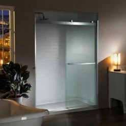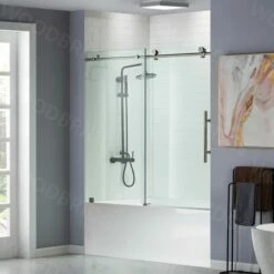 WOODBRIDGE Frameless Bathtub Shower Doors 56-60″ Width X 62″Height With 5/16″(8mm) Clear Tempered Glass, 2 Ways Opening & Double Sliding In Brushed Nickel Finish