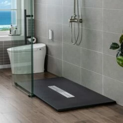 WOODBRIDGE 60-in L X 36-in W Zero Threshold End Drain Shower Base With Center Drain Placement, Matching Decorative Drain Plate And Tile Flange, Wheel Chair Access, Low Profile, Black
