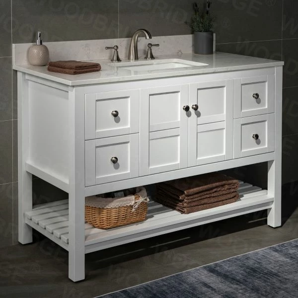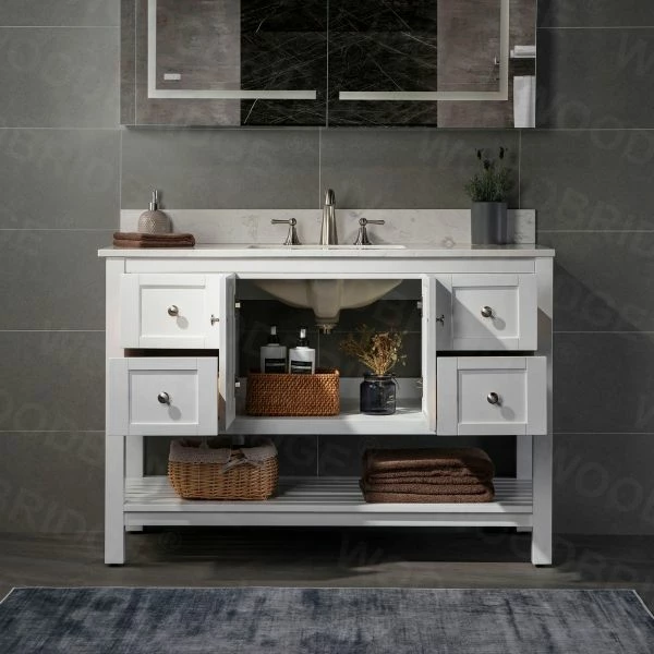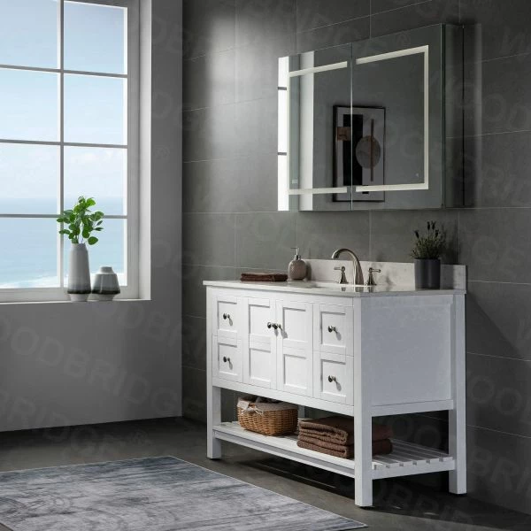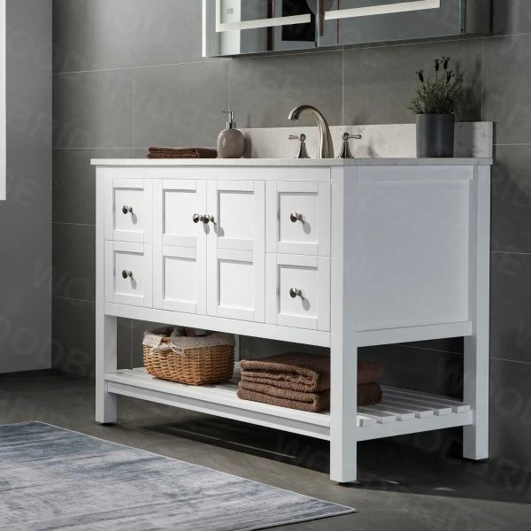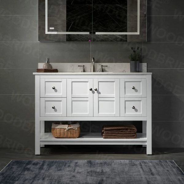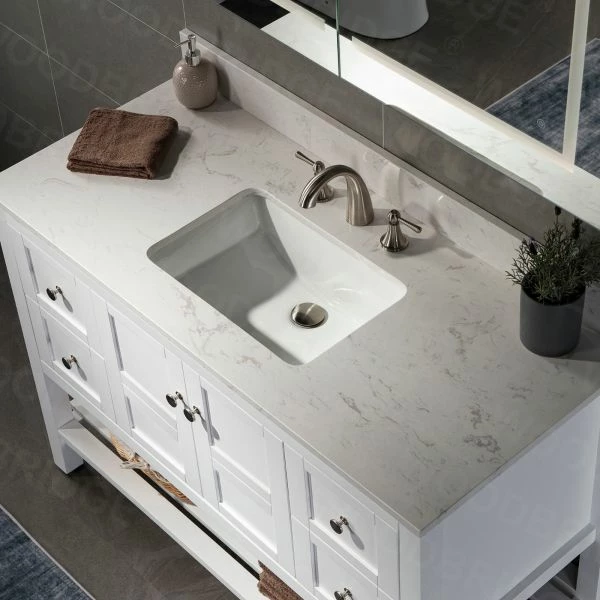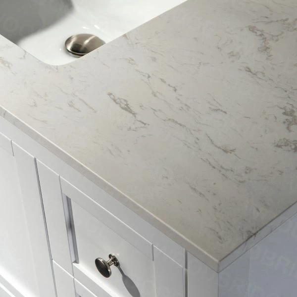 โ [DIMENSIONS]: Vanity dimensions: 48″ L x 21″ W x 33″ H; Engineered Stone Composite white carrara finish vanity top dimensions: 49″ L x 22″ W; Assembled dimensions with top and back splash: 49″ W x 22″ D x 38″ H