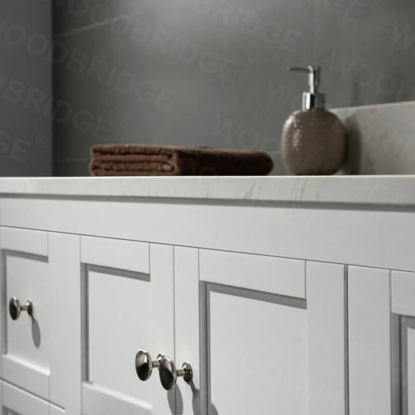 โ [RELIABLE and PERFORMANCE]: Soft-closing hinges and slides on drawers and doors ensures to open and close your cabinet in quiet without noise, preventing damage to the sides around it. Dovetail jointed drawers with undercount slide; Brushed Nickel door knobs a perfect match to contemporary bathroom decor. Woodbridge grey cabinet finish with color matching interior.