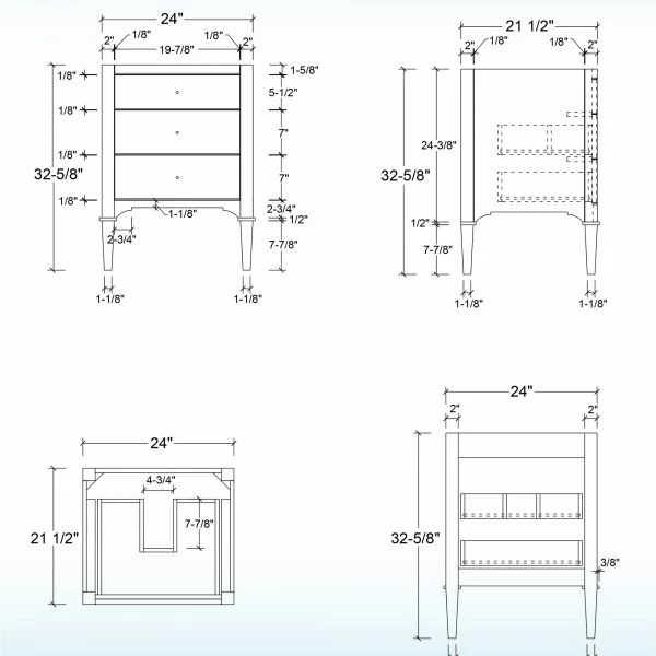 β [MATERIAL and DIMENSIONS]: 100% high-end furniture grade solid wood (rubberwood/birch wood) doors frame and Plywood panel, All drawers are pine wood dovetailed construction drawers, fully extension and with Bullnose top edge. First drawer is fake drawer, middle drawer is U-shaped drawer and pull out drawer at the bottom.