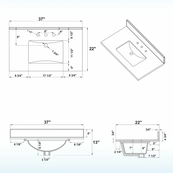 β [Easy to Installation]: Top pre-drilled with 3-hole for 8-inch widespread faucet set up option, Assembled stylish rectangular white vitreous china undermount bowl with safety overflow hole, This top is perfect for quick and easy remodels. Obtain the beauty and durability of marble without hiring a professional
