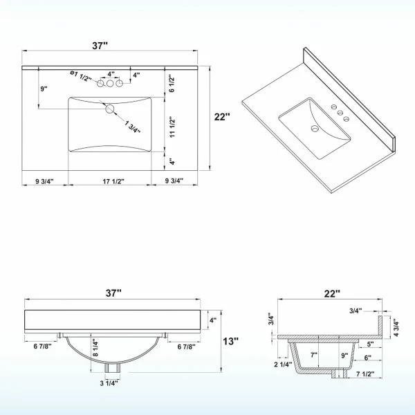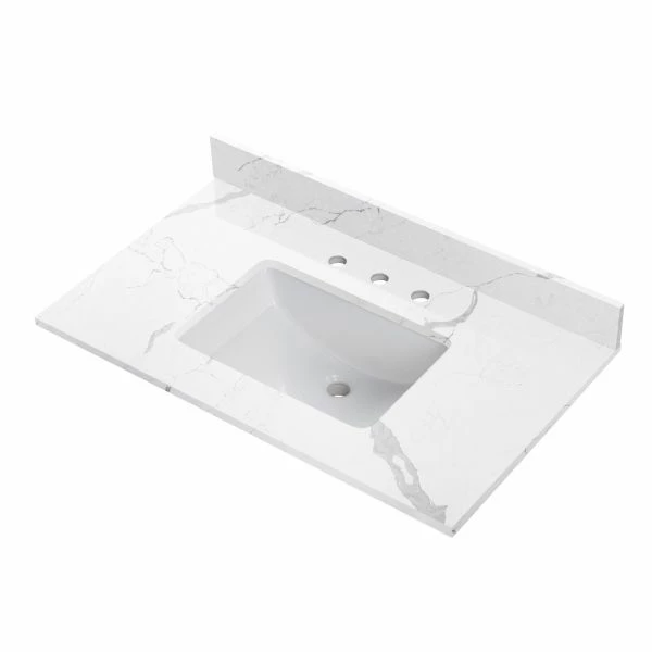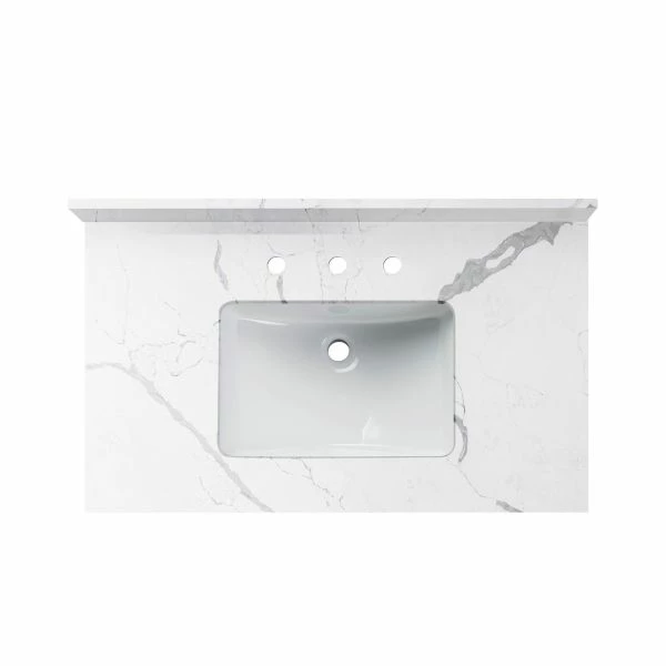 ✅ [Easy to Installation]: Top pre-drilled with 3-hole for 4-inch centerset faucet set up option, Assembled stylish rectangular white vitreous china undermount bowl with safety overflow hole, This top is perfect for quick and easy remodels. Obtain the beauty and durability of marble without hiring a professional
