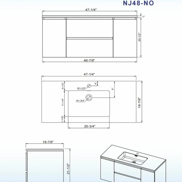 ✅ [ENVIRONMENTALLY FRIENDLY HIGH-QUALITY MATERIAL] The 48-inch Bathroom Vanity Countertop integrated basin made by resin, which is one body Integrated molding, no water stain and easy to clean. vanity material is MFC with a free painting plate E1 class which is good for health.