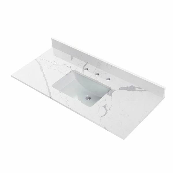 ✅ [PACKAGE INCLUDED]: Vanity top with assembled rectangular undermount bowl , matching 4″ high Backsplash. Besides, extremely solid package – very firm carton box with foam is used to transport top, making sure a safe delivery. (Attention) Faucet and side splash NOT included
