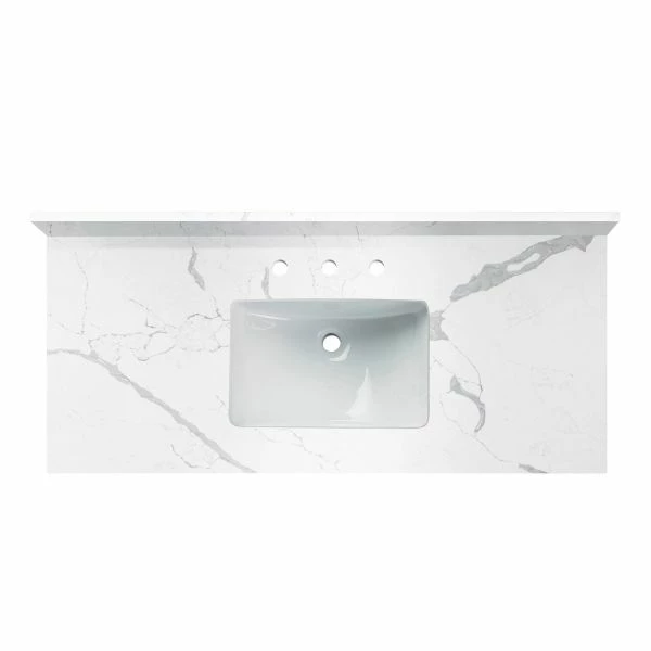 ✅ [Easy to Installation]: Top pre-drilled with 3-hole for 4-inch centerset faucet set up option, Assembled stylish rectangular white vitreous china undermount bowl with safety overflow hole, This top is perfect for quick and easy remodels. Obtain the beauty and durability of marble without hiring a professional