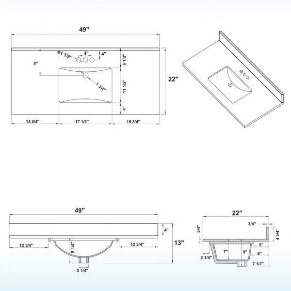 ✅ [DIMENSIONS ]: Exterior Dimension: 49″ wide x 22″ deep . Fits Most Standard 48-in W x 21-in D vanity cabinet
