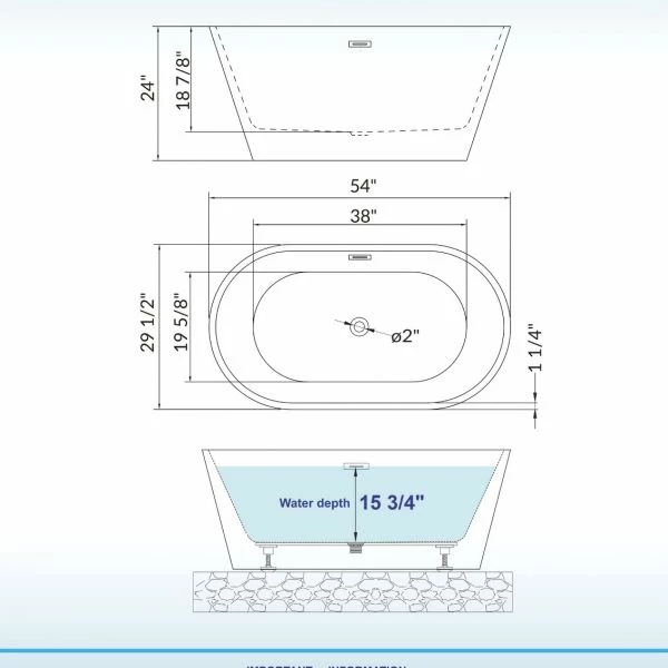 ✔ [PACKAGE INCLUDED]: Solid brass Brushed Nickel drain, stainless steel Brushed Nickel overflow, user & instruction manual. Besides, extremely solid package – very firm carton box is used to transport bathtubs, making sure a safe delivery.
