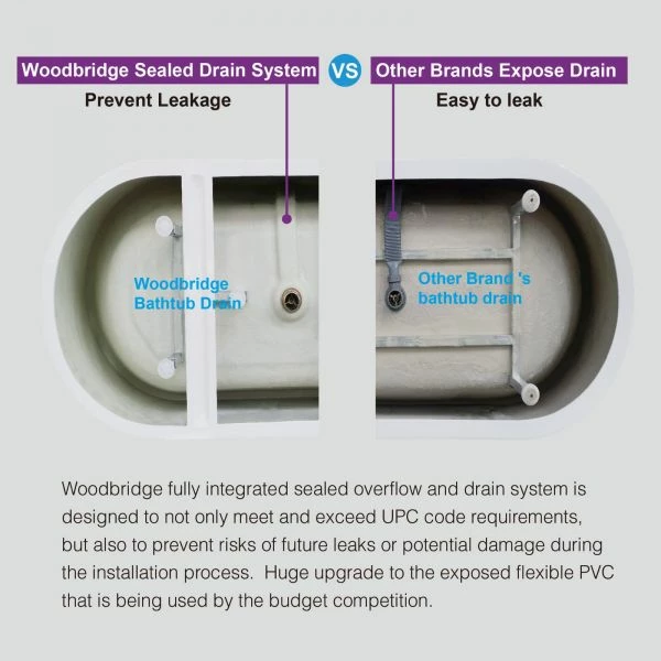 ✔ [PREMIUM QUALITY CONSTRUCTION]: WOODBRIDGE bathtub is made out of 100% high gloss white LUCITE acrylic and reinforced with ASHLAND resin & fiberglass . All of these are top quality material which are rarely used by others due to a relatively high cost.