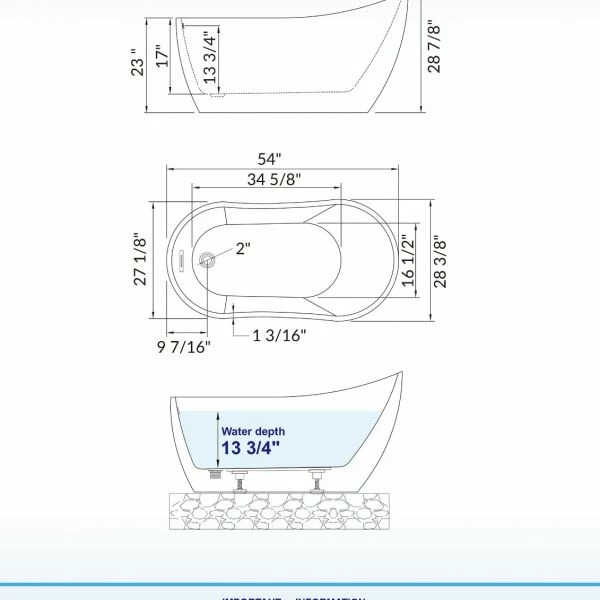 ✔ [DIMENSIONS AND SPECIFICATIONS]: Exterior Dimension: 54″ Long x 28 3/8″ Wide x 28 7/8″ Deep – Effective Tub Capacity: 55 Gallons ,Chrome Overflow & Drain.