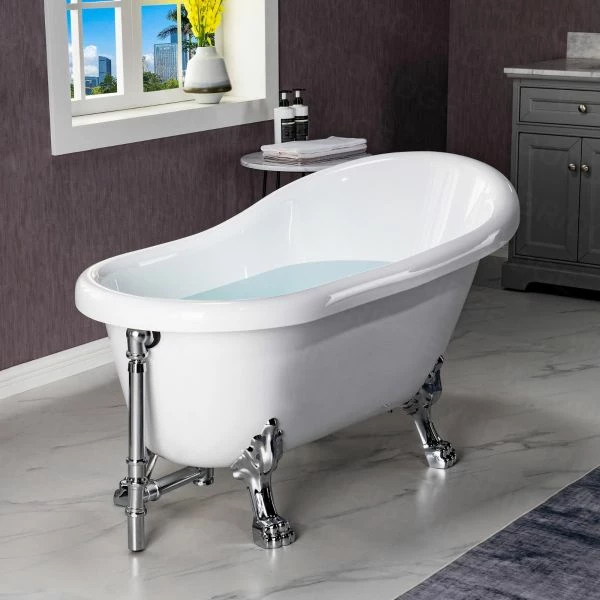 โ [PACKAGE INCLUDED]: White clawfoot tub, Polished Chrome feet , Brass drain & overflow in Polished Chrome finish and user manual. Besides, extremely solid package – very firm carton box is used to transport bathtubs, making sure a safe delivery.