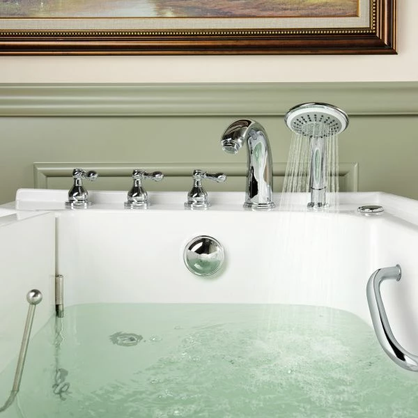 โ [SAFETY AND COMFORT ]: ADA height bult-in seat reduce stress on knees and back, non-Slip design bottom for secure standing and built in safety hand held safety grab bar to provide support and balance while getting in and out from the tub.