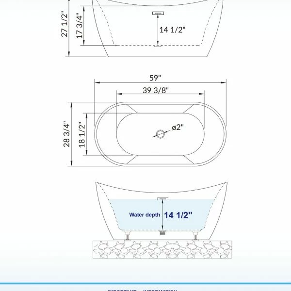 ✔ [DIMENSIONS AND SPECIFICATIONS]: Exterior Dimension: 59″ Long x 28 3/4″ Wide x 27 1/2″ Deep – Effective Tub Capacity: 55 Gallons