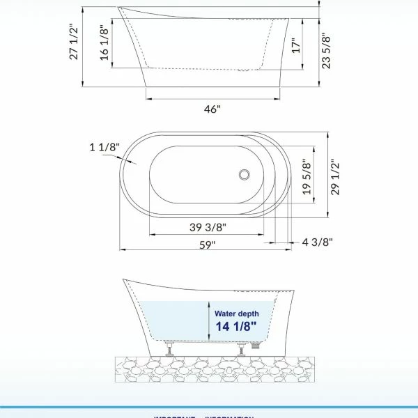 ✔ [DIMENSIONS AND SPECIFICATIONS]: Exterior Dimension: 59″ Long x 29 1/2″ Wide x 27 1/2″ Deep – Effective Tub Capacity: 55 Gallons , Brushed Nickel Drain and Overflow.