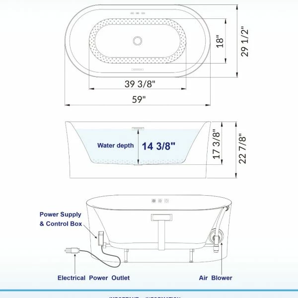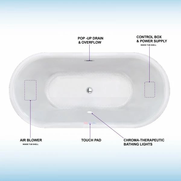 ✅ [DESIGN INSPIRATION]: WOODBRIDGE bathtub is design for luxury and comfort with Air bath blower releases tiny air bubbles into bath water making it like taking a champagne bath. Gently sloping lines follow the natural curves of body providing exceptional comfort. Easy operating touch panel concealed by being flush against the surface of tub and 7 color LED lights offer a relaxing Chromatherapy experience, bath light on side make it a fine artistic craftmanship bathtub, easily transform your bathroom into a personal spa, relax comfortably in a durable yet luxury acrylic tub.