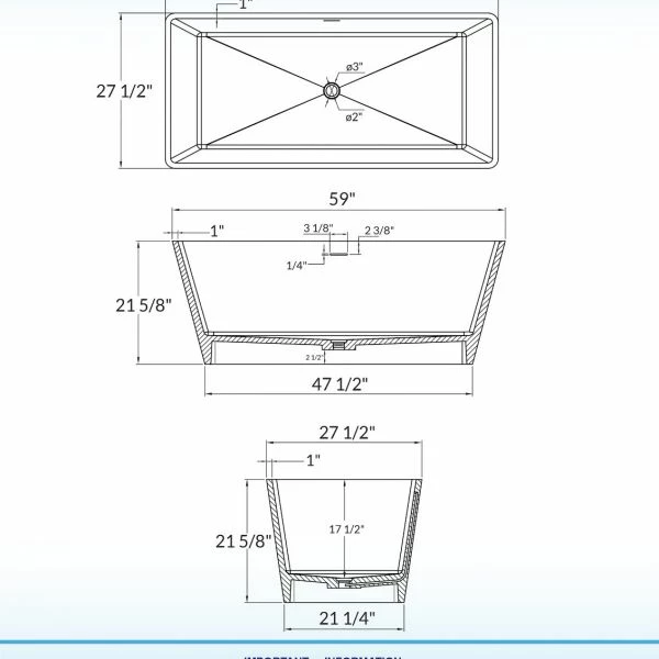 ✅ [DIMENSIONS]: Exterior Dimension: 59 (L) ” x 27-1/2 (W) ” x 21-7/8(H) x 17-1/2(D)” Basin Seating Dimension:47-1/2 (L)” x (W)21-1/4″