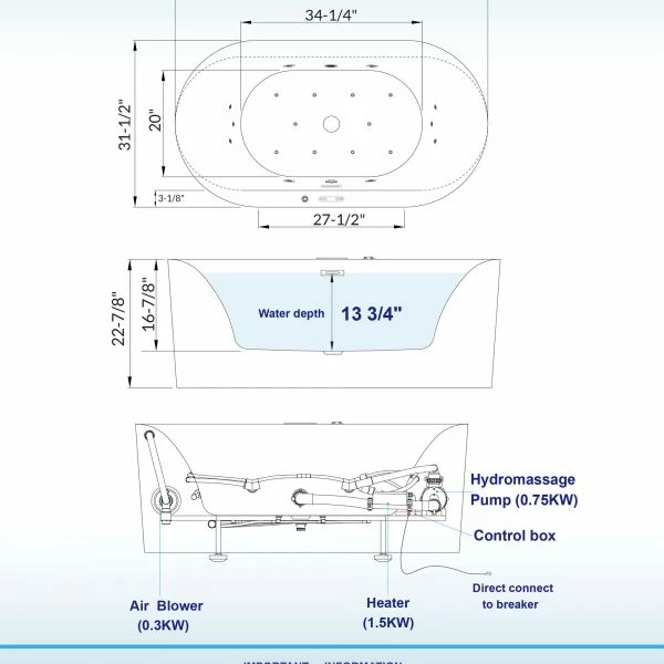 โ [CERTIFICATION & WARRANTY]: WOODBRIDGE Hydromassage bathtub is certified to UL1795. Complies with ASME A112.19.7/CSA B45.10, CSA B45.5/IAPMO Z124, CSA C22.2 No.218. IPC and NPC; Products approved and meet the Massachusetts Plumbing & Gas Code. WOODBRIDGE bathtub is warranted to be free of defects in material and workmanship for 1-Year from date of purchase, The professional support team is happy to assist with any sales or product-oriented queries.