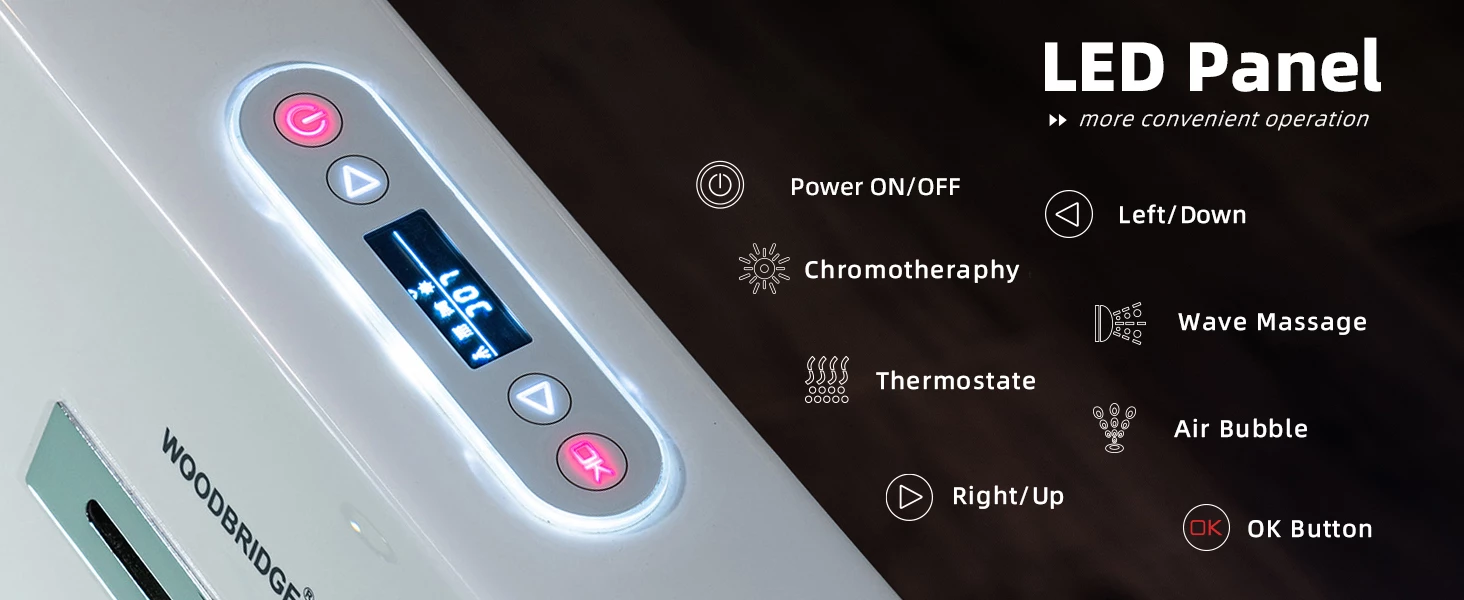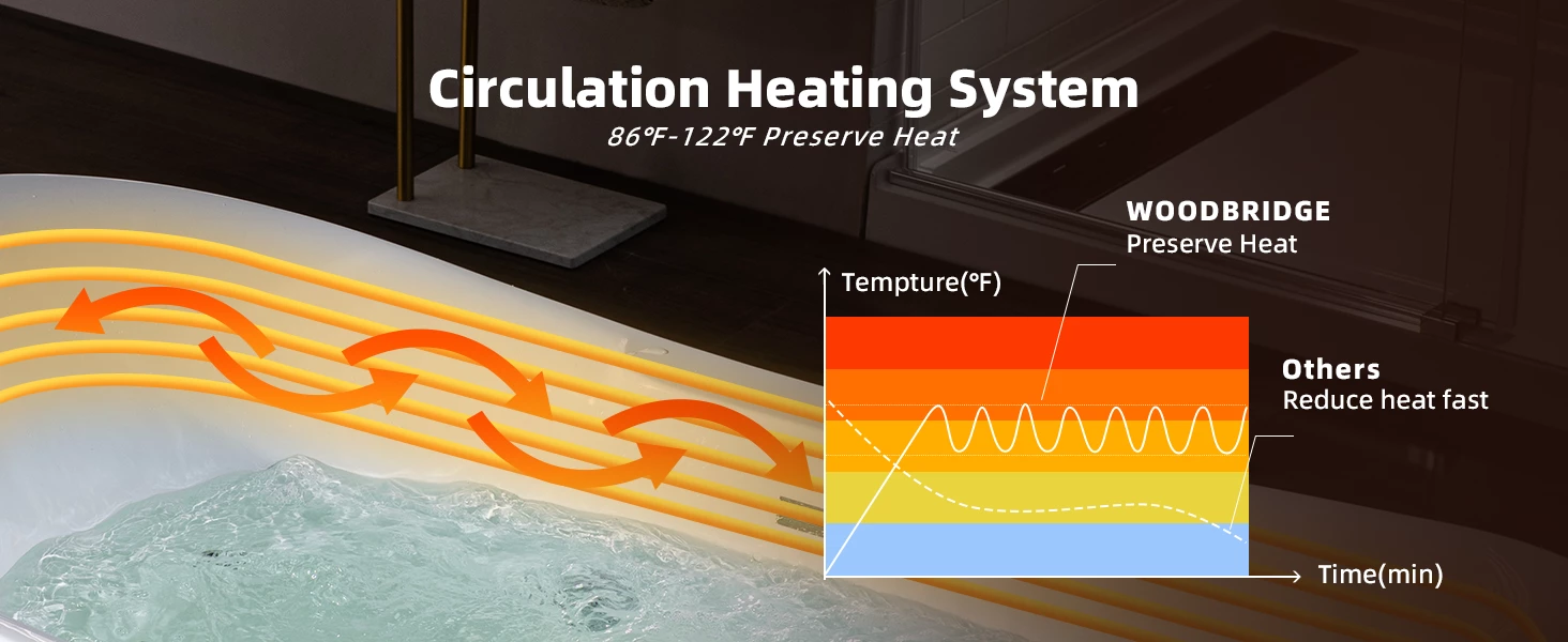โ [HEATED SOAKING TUB]: With Inline Heater. This bathtub allows for a longer soak without adding more hot water. Setting the water temperature on LED control panel. Enjoy a hot bath for the entire bathing experience .