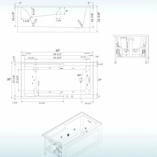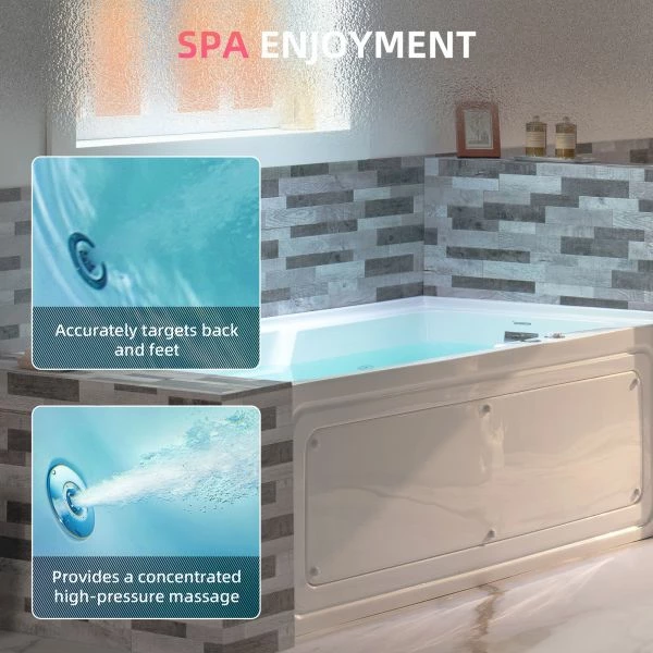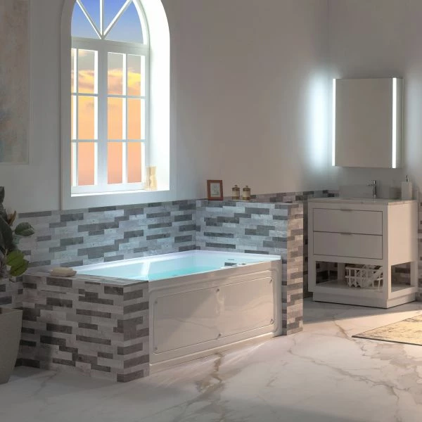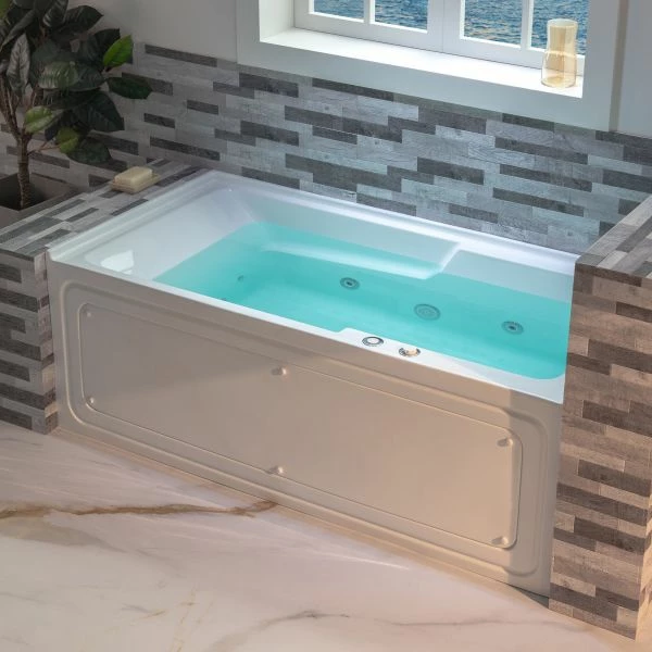 WOODBRIDGE 60″ Alcove Acrylic Rectangular Whirlpool Heated Jetted Tub In White With Right Drain, Chrome Pop-up Drain Included BS6030R