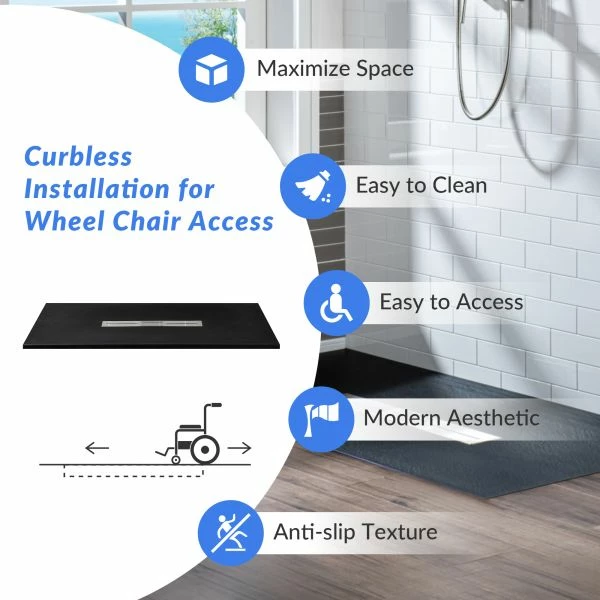 ✅ [LOW PROFILE EASY ACCESS]:Low step easy shower entry and anti-slip texture floor for safe access, Perfect for wheelchair access or person having difficulty stepping over higher threshold.