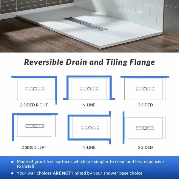 ✅ [CENTER DRAIN AND TILING FLANGE]:Center drain is more conventional and cost-effective and the integrated tiling flange ensures no leaks will come between the shower base and walls, giving you peace of mind.