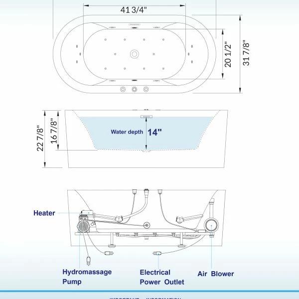 ✅ [CERTIFICATION & WARRANTY]: WOODBRIDGE Hydromassage bathtub is certified to UL1795. Complies with ASME A112.19.7/CSA B45.10, CSA B45.5/IAPMO Z124, CSA C22.2 No.218. IPC and NPC; Products approved and meet the Massachusetts Plumbing & Gas Code. WOODBRIDGE bathtub is warranted to be free of defects in material and workmanship for 1-Year from date of purchase, The professional support team is happy to assist with any sales or product-oriented queries.