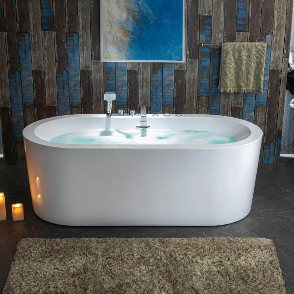 ✅[WHIRLPOOL AND AIR BUBBLE]: WOODBRIDGE Deluxe acrylic Freestanding bathtub combine with Whirlpool and Air Bubble Jets in one tub