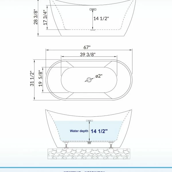 ✔ [DIMENSIONS AND SPECIFICATIONS]: Exterior Dimension: 67″ Long x 31 1/2″ Wide x 28 3/8″ Deep – Effective Tub Capacity: 60 Gallons