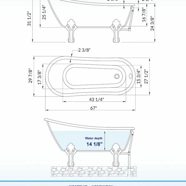 ✅ [DIMENSIONS AND SPECIFICATIONS]: Exterior Dimension: 67″ Long x 30″ Wide x 31 1/2″ Deep – Effective Tub Capacity: 60 Gallons