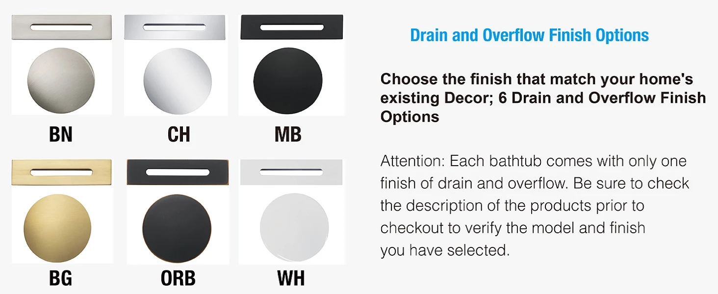 ✅ [PACKAGE INCLUDED]: Acrylic tub, Solid brass construction chrome pop-up drain, stainless steel construction of chrome overflow cover, user manual and installation instruction are included.
