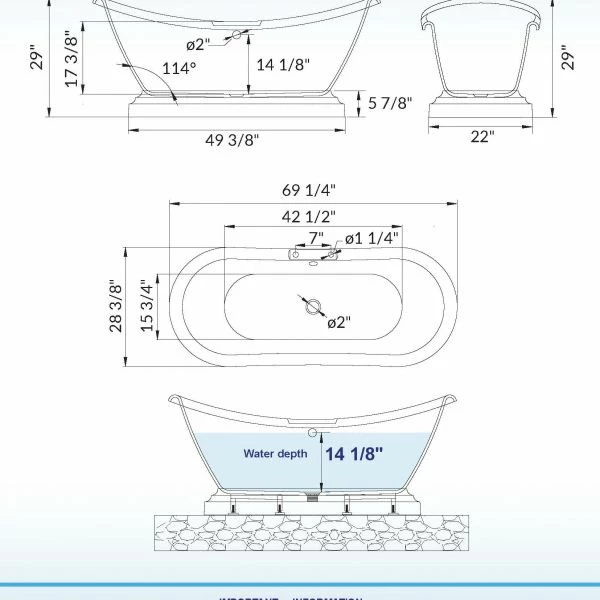 ✅ [DURABLE]: Acrylic and reinforced with fiberglass for long lasting durability. Bottom with stainless steel bracket makes the bearing capacity is up to 1000 LBS , Double Walled reinforce design bringing maximum insulation and keeping water at its desired temperature longer and suitable for the average adult person bathing.