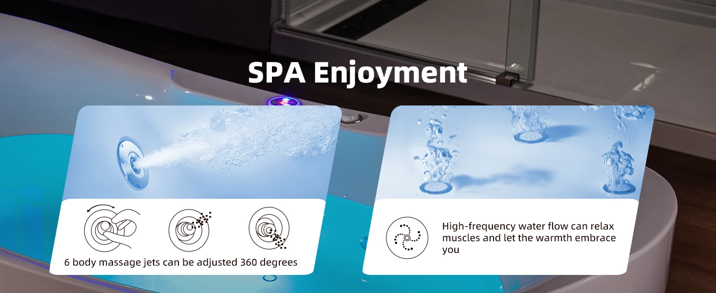 ✅[STAINLESS STEEL JETS]: Stainless Steel sanitary full-draining jets , underwater chronotherapy light, Spaciously designed to provide maximum bathing space with a wide and deep bathing well