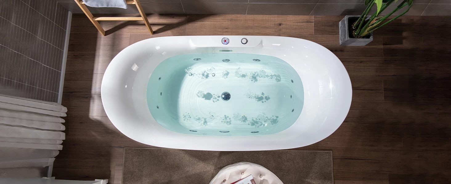 ✅[WHIRLPOOL AND AIR BUBBLE]: WOODBRIDGE Deluxe acrylic Freestanding bathtub combine with Whirlpool and Air Bubble Jets in one tub
