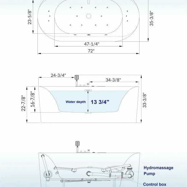 ✅[DIMENSIONS AND SPECIFICATIONS]: Exterior Dimension: 72″ L x 35-3/8″ W x 22-7/8″ H – Effective Tub Capacity: 74 Gallons; Seating Dimesion: 47-1/4″ L x 23-5/8″ W, Water Depth to Overflow: 13-3/4″ D. Power Requirements: 1 Dedicated 120V 30AMP Breakers