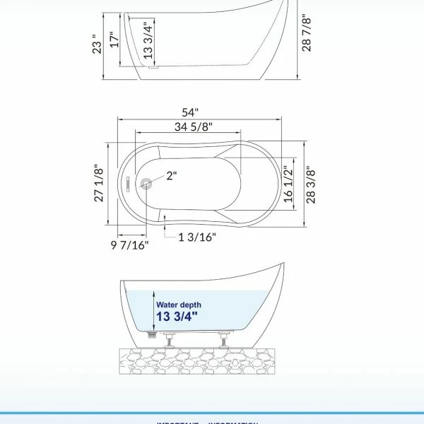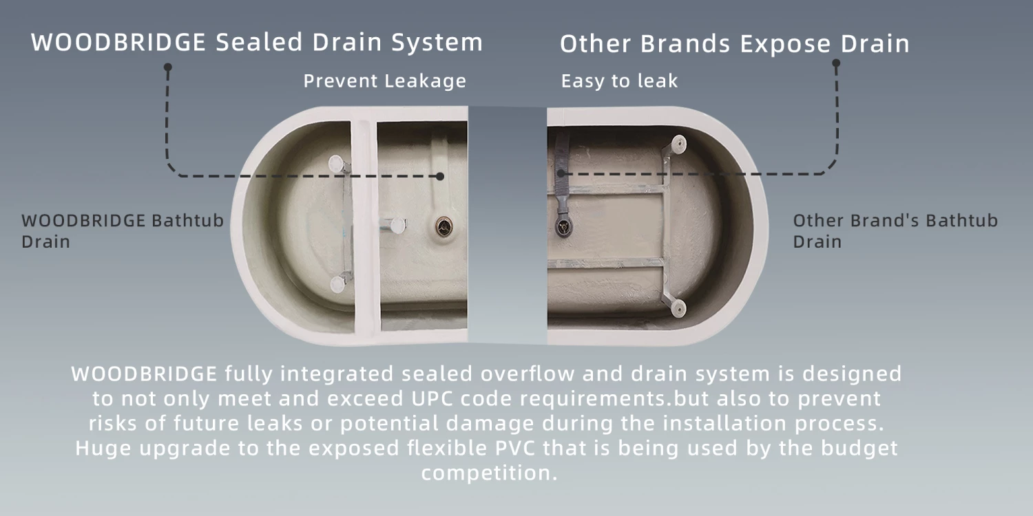 transport bathtubs, making sure a safe delivery. - ✔ [CERTIFICATION & WARRANTY]:Products are in compliance with CSA B45.5-17/IAPMO Z124-2017. WOODBRIDGE warrants 1 Year limited warranty to be free of defects in material and workmanship and US based product support team is happy to assist with any sales or product-oriented queries.